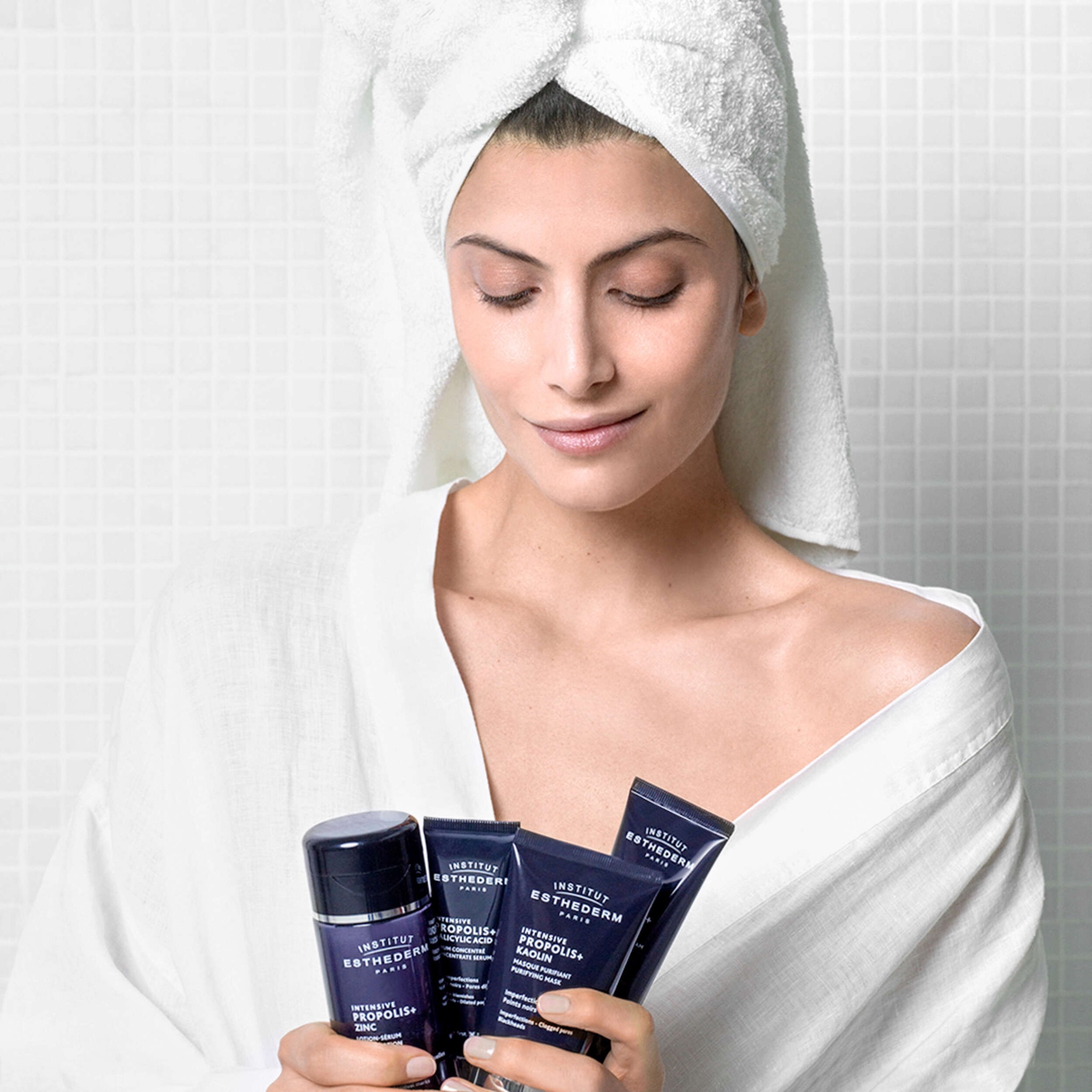 Then 2 to 3 times a week, apply our Propolis+ Purifying Mask to your entire face, avoiding the eye area. This purifying mask and its creamy, unctuous texture deeply cleanse your skin and unclog pores. From the first use, the skin is purified and freed from impurities*. After rinsing, the skin is soft and clear. Day after day, the skin is mattified and imperfections are reduced.